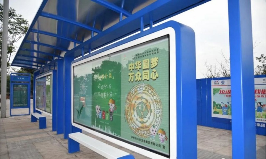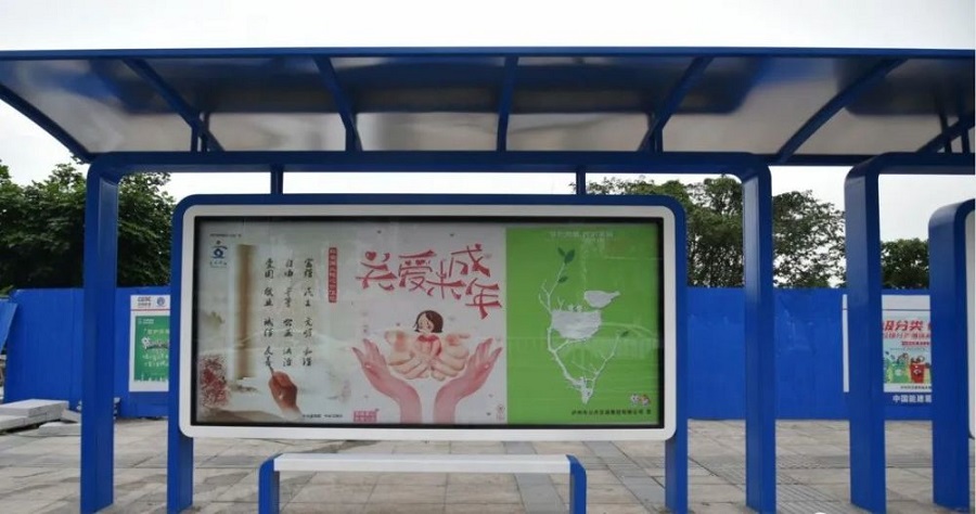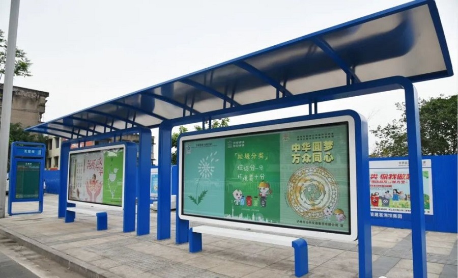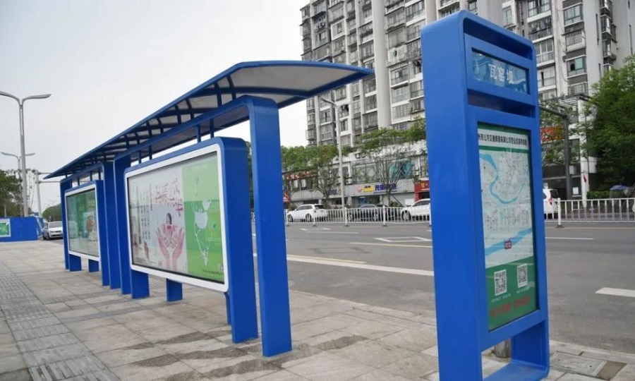新款的公交站臺,不再是單一的路線牌,跳躍的藍白配色,在視覺上更簡潔大氣,讓室外候車更有趣