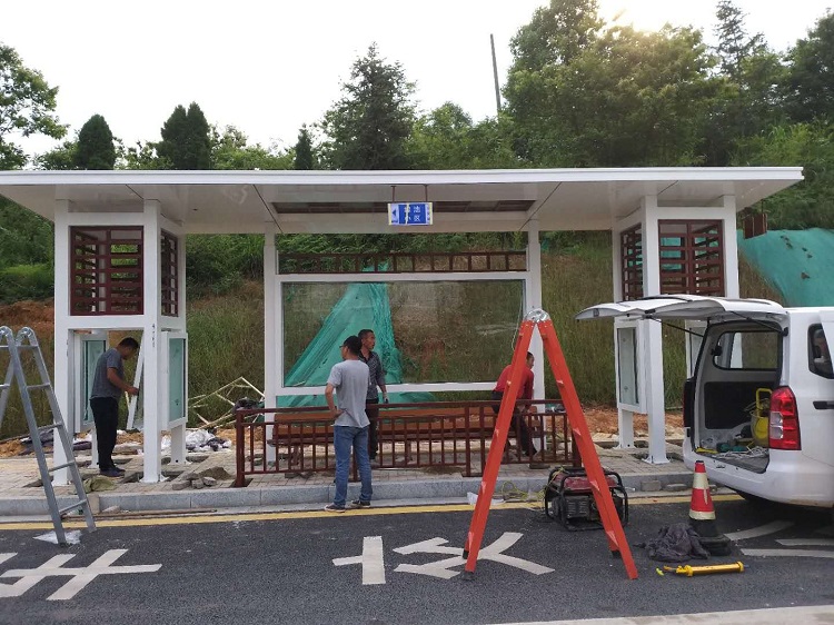 以下是此次岳陽市候車亭裝車現場: